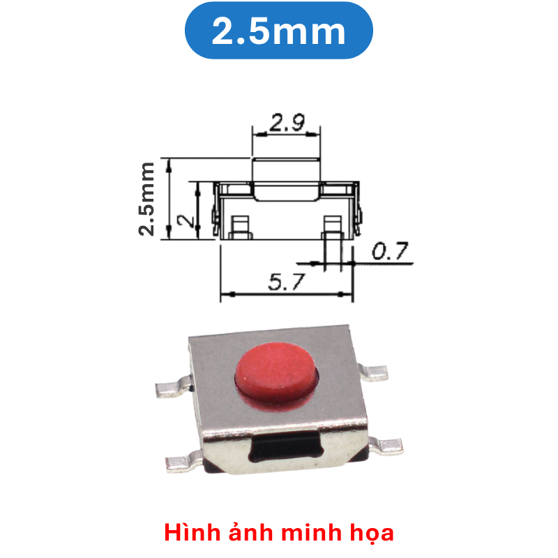 - Sản phẩm nút nhấn kích thước 6x6mm với 4 chân dán.