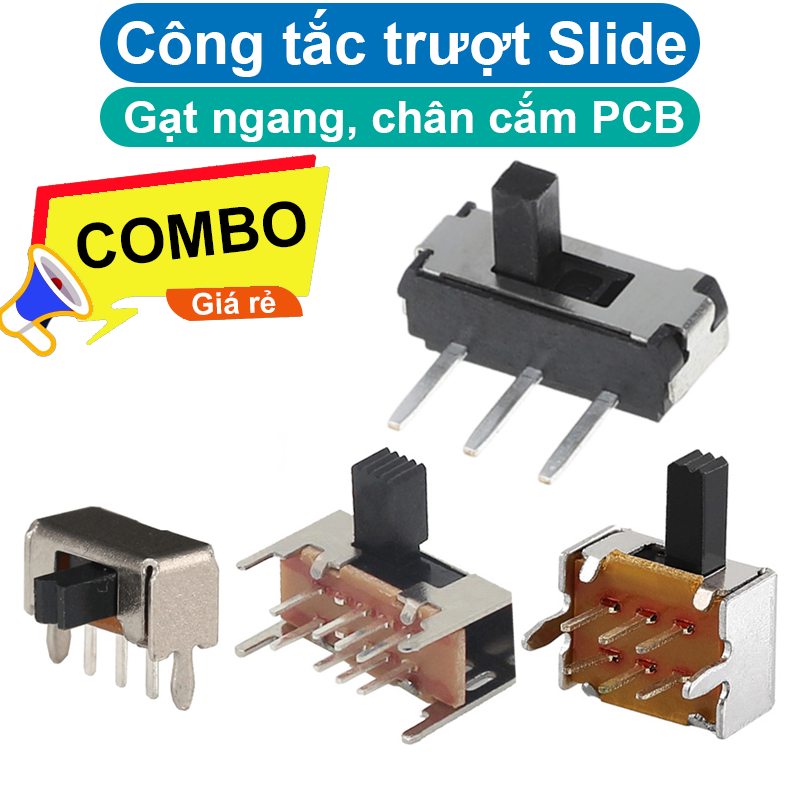 - Công tắc trượt (Slide Switch) là loại công tắc điện cho phép đóng hoặc ngắt mạch bằng cách trượt nút gạt sang trái hoặc phải. Kích thước nhỏ gọn, dễ lắp đặt, thường dùng trong thiết bị điện tử mini, mạch Arduino, đồ chơi, điều khiển thiết bị đơn giản.