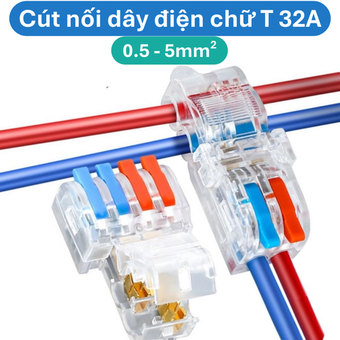 - Cút nối dây điện nhanh chữ T giúp nối các dây điện với nhau trong vòng 3 giây, không cần băng dính cách điện và việc tháo dây khỏi cút nối khi không cần đến cũng dễ dàng như lúc lắp vào, đặc biệt loại cút nối dây điện này có thể tái sử dụng được nhiều lần (không lo bị gẫy chốt, lẫy).