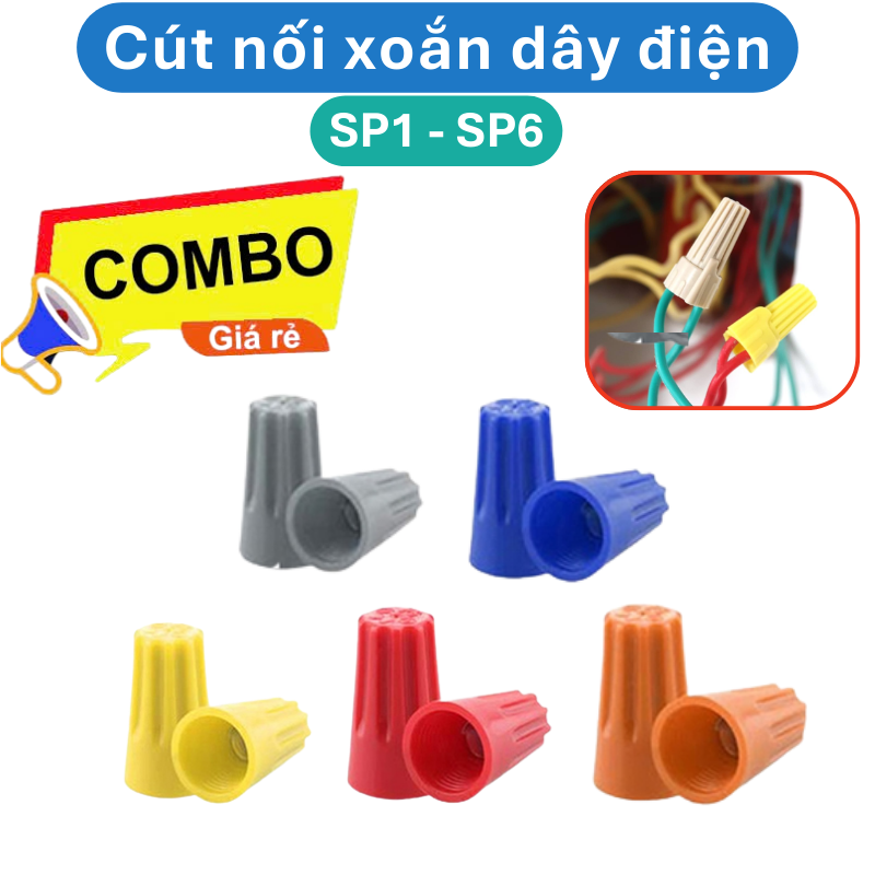 - Cút nối xoắn dây điện SP1-SP6 là một giải pháp tiện lợi và an toàn để kết nối các dây điện với nhau mà không cần sử dụng các công cụ như kìm bấm cos hay băng dính cách điện.