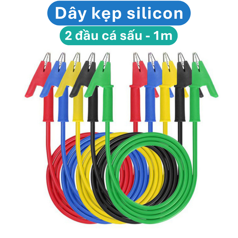 - Dây điện có sẵn kẹp cá sấu, nhiều màu đẹp, dễ sử dụng, có thể dùng cho điện DC dưới 10A.