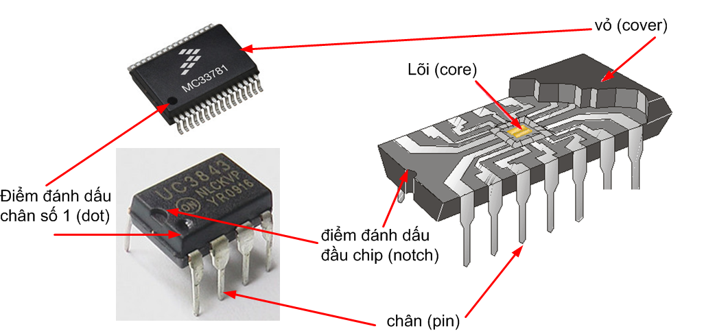 IC hay bạn có thể gọi vi mạch tích hợp, là một phần mạch điện được tích hợp các transistor và các dạng điện trở thụ động, chúng sẽ được liên kết với nhau với kích thước tính bằng Micromet. Trong tiếng Anh, IC được viết là: Integrated Circuit – chip.