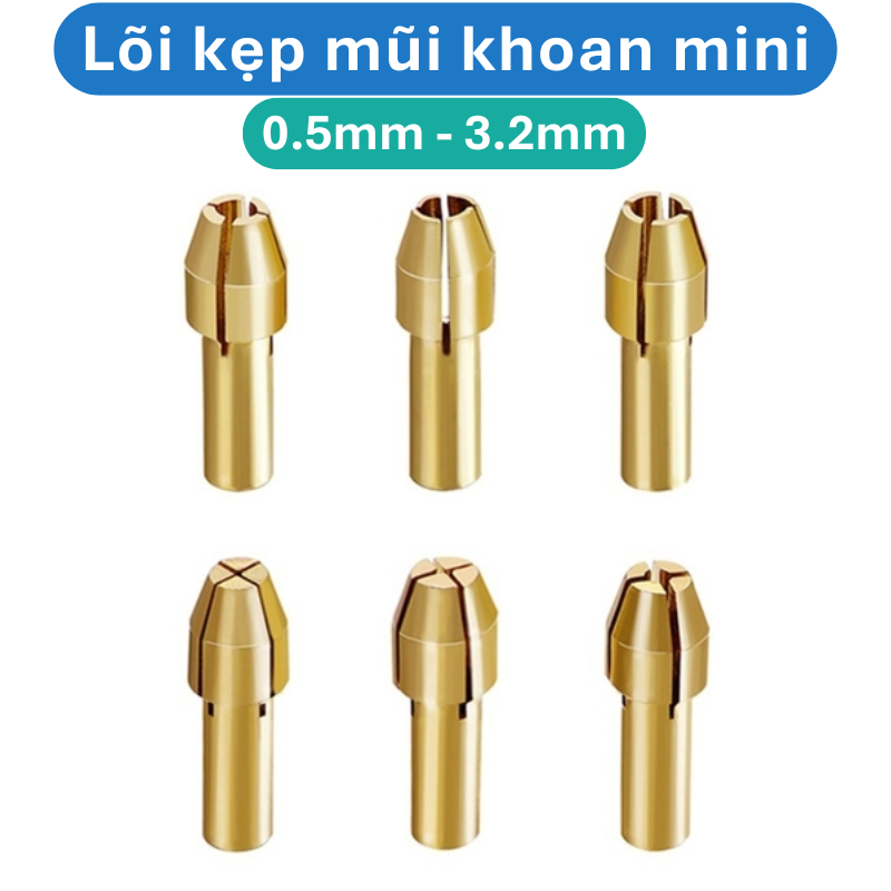 - Lõi kẹp mũi khoan mài khắc mini 0.5-3.2mm sẽ giúp bạn thay đổi đường kính mũi khoan, mũi khắc, mũi mài chỉ bằng một tháo tác nhanh chóng.