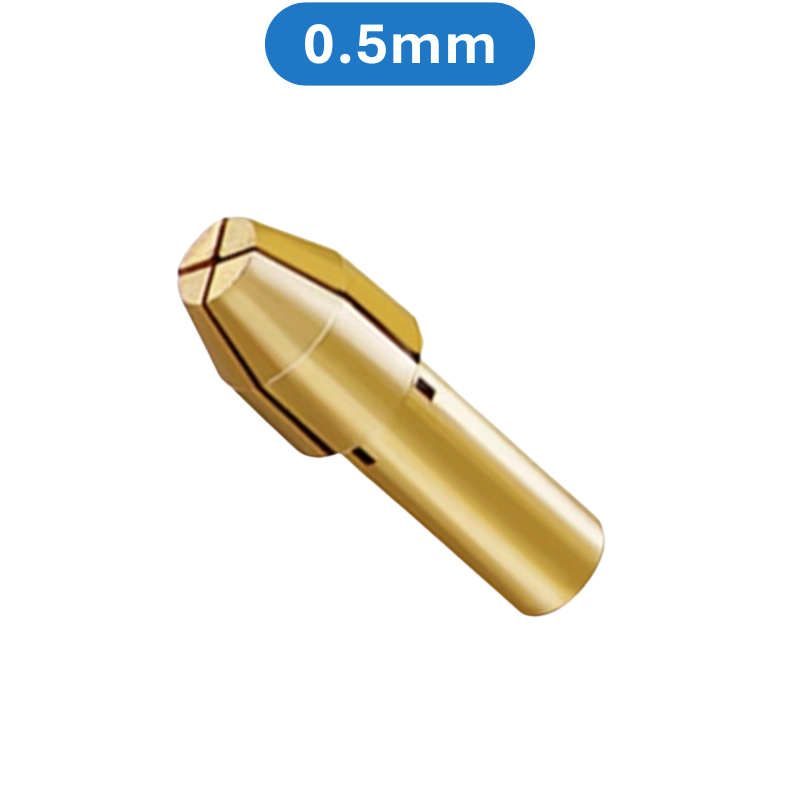 - Loại 0.5mm : có thể kẹp mũi khoan từ 0.2-0.5 mm