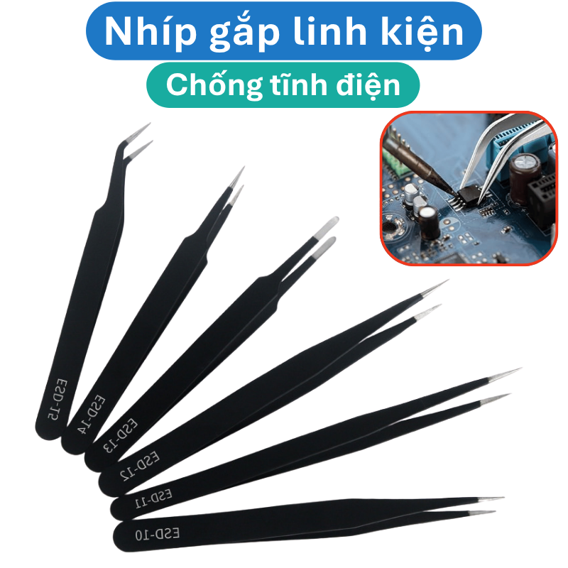 - Nhíp gắp linh kiện và nhíp sửa chữa chống tĩnh điện ESD là các công cụ chuyên dụng được sử dụng trong việc xử lý linh kiện điện tử một cách an toàn và chính xác.