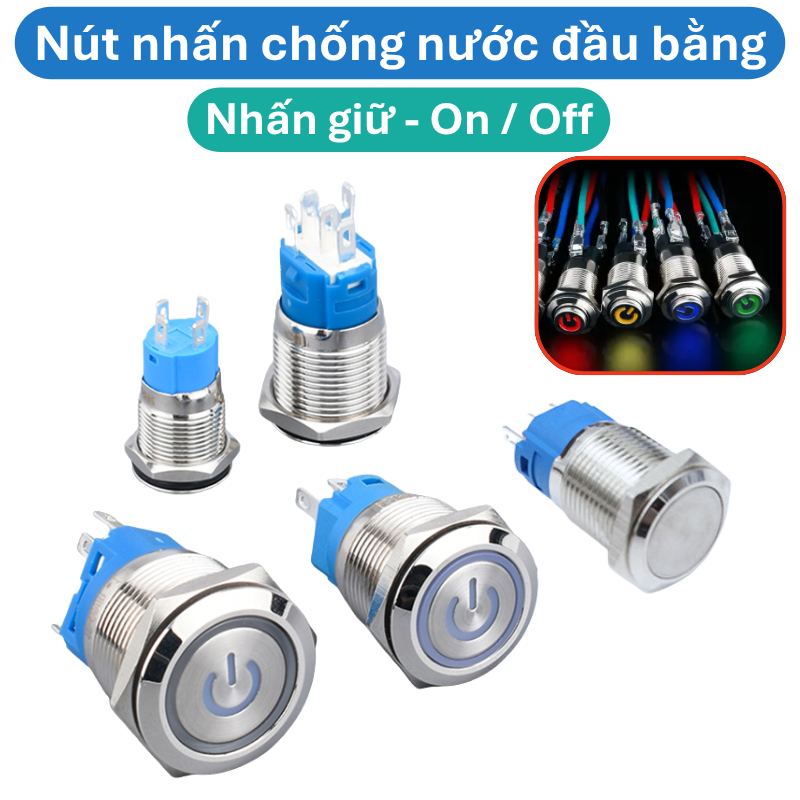 - Lỗ khoét: 12mm / 16mm / 19mm ( Có đèn hoặc đèn xanh, đèn đỏ => Tùy vào nhu cầu quý khách chọn sản phẩm cho phù hợp)