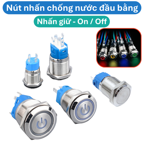 - Nút nhấn chống nước đầu bằng ( Nhấn Nhả - Reset ) là nút nhấn đầu bằng, khi nhấn thì nút nhấn sẽ lõm xuống.